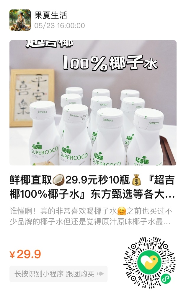 总结:超吉椰100%椰子水,用纯粹和鲜甜征服味蕾,29.9元带走10瓶,体验真正的海岛风味!