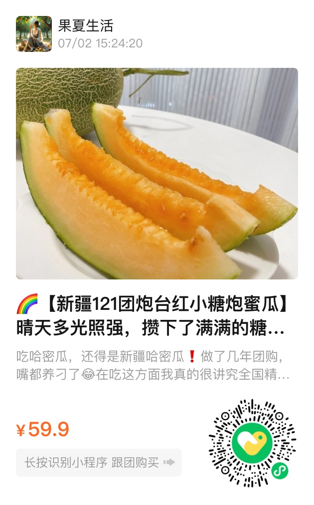 总结: 新疆121团的红小糖炮蜜瓜,甜得磅礴却温柔,像戈壁落日下的一首慢诗。它的脆与糯、香与甜,都是天地写就的韵脚,尝过才懂,有些滋味,注定要长在常年晴朗的地方。