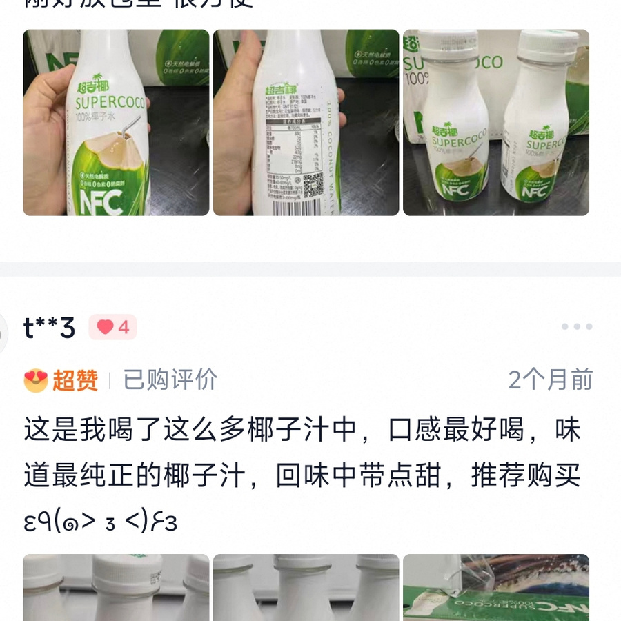 【活动内容】现在29.9元即可获得一箱10瓶装的「超吉椰100%椰子水」,每瓶245ml,冰镇更佳,运动补水、家庭饮用、烹饪百搭皆宜。天然成分,0添加,适合全家人饮用。