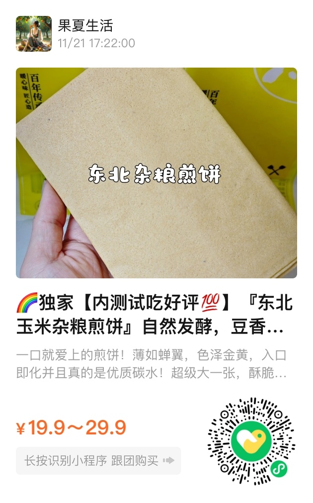 包小苞的玉米杂粮煎饼,是那种越嚼越见温情的食物。它讲究、质朴、讲故事,是从长白山水脉里汲取了清冽甘甜,又从百年煎饼老匠手中习得了松软细腻。在快节奏生活中,它是一张能让人慢下来的煎饼,吃的是杂粮,品的是乡愁。