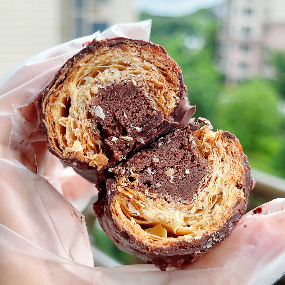 小时候,村口的油酥饼总是要掰开吃,才觉得那一层层的香气才算“散”出来。荷家拿破仑大概就是把那份记忆搬进了甜品的世界——安佳动物奶油的醇厚,像清晨炊烟般柔和地笼在舌尖;1922年法国法芙娜巧克力的香,像老电影里的黑白乐章,沉稳又不失惊喜。酥皮在齿间“咔”的一声,仿佛古老城堡的门缓缓推开,里面是榛子、咖啡、原味交织的馥郁气息。
