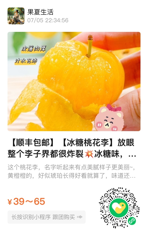 总结:冰糖桃花李,是果中美人,也是生活中的一口清醒。它没有高调炫技,却在细节中温柔你、滋养你。不光是好吃,更是有温度的陪伴,有记忆的延续。吃的是李,尝的是夏天,回味的是人生。
