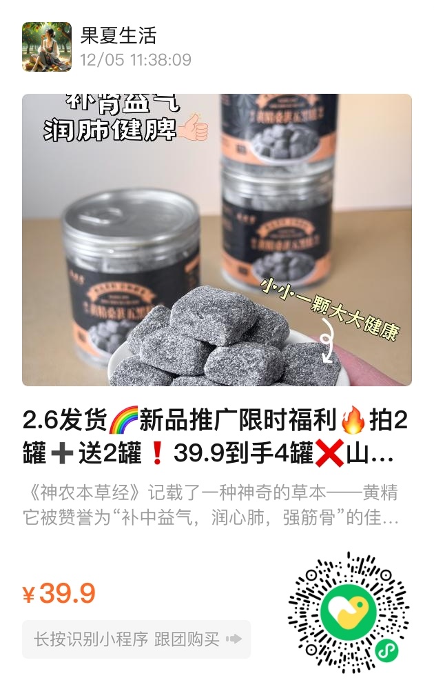 这次新品推广,东健堂特别推出限时福利:拍2罐送2罐,39.9元到手4罐。平均一罐不到10元,让养生这件事不再是奢侈的投入,而是贴心实惠的陪伴。希望每一位选择东健堂的朋友,都能在这朴实无华的小糕点里,感受到被理解、被用心呵护的温暖。