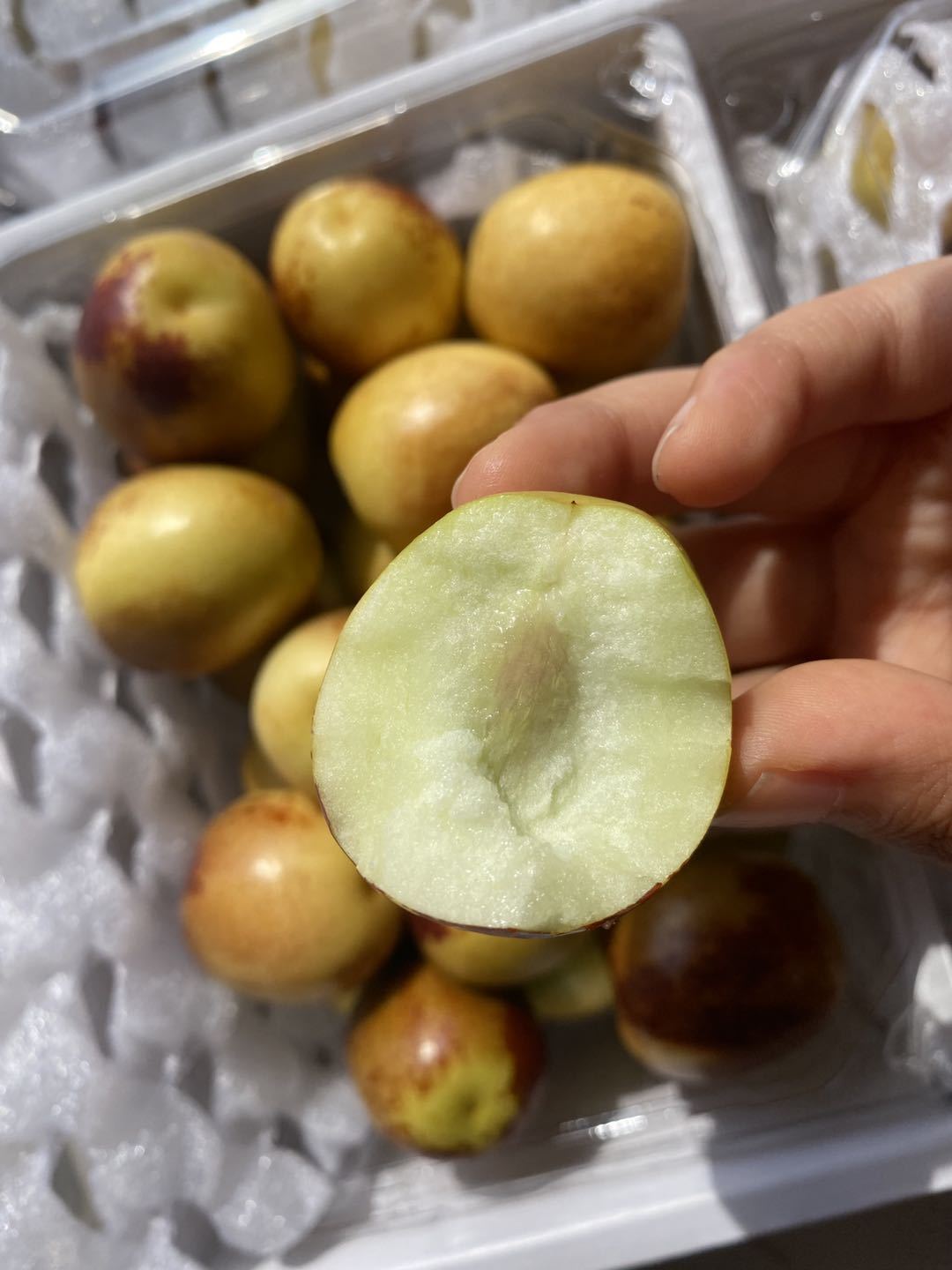 果霸霸的冬枣,每一颗都像是精心雕琢的“天然糖心维C丸”,维C含量是苹果的70倍,甜度更是高达22度以上。它不只是一颗枣,更像是一种情绪的治愈剂——一口“咔嚓”脆响,甜到心尖,就像一天的疲惫被悄悄抚平。它皮薄、酥脆、化渣,甚至连果核都小得让人满意。很多老客说,吃过果霸霸,其他的冬枣都成了将就。
