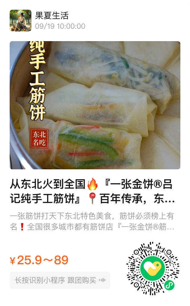 📣【活动信息】现已开启限时团购,下单即享百年技艺手工筋饼,每份12张,原味/玉米味任选,现做现发,数量有限,售完即止!
