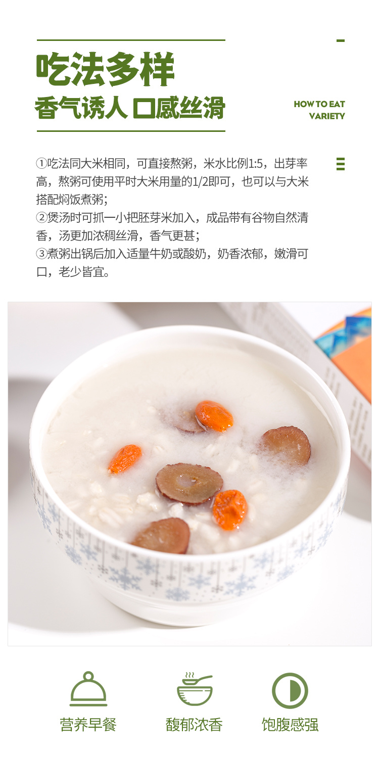 随着现代人对健康的日益关注,我们越来越意识到“食物即药物”的重要性。燕麦胚芽米,富含蛋白质、膳食纤维以及丰富的矿物质和微量元素,不仅帮助调节血糖,更能提升肠道健康。特别是对于三高或控糖群体,它的低GI特性无疑是一种理想的选择。而其细腻的口感和Q弹的质地,无论是做粥、煲汤,还是焖饭,都能为家人带来一份健康与美味的温暖。生活中,选择一粒“发芽的宝藏”,每一口都仿佛能感受到自然的馈赠,让健康与美好不期而至。