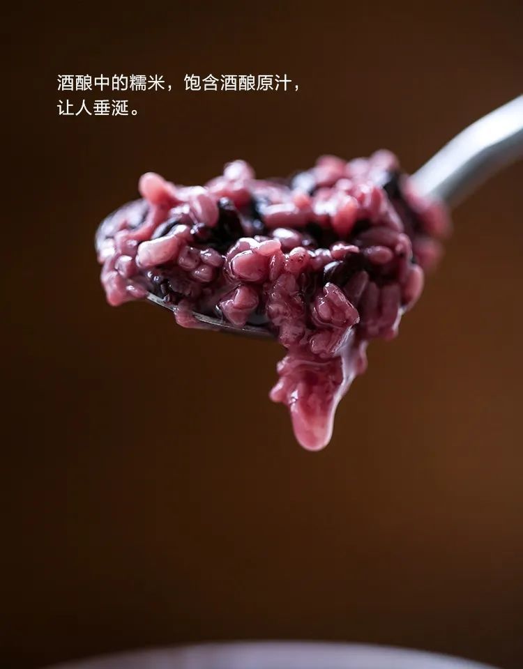 紫米,是米中的诗人。来自云南墨江的这株“古稻”,要花上整整三百天,在哈尼梯田的日月里慢慢生长,才长成它那身紫得发亮的外衣。也许你觉得酒酿只是碗甜食,但其实它是会讲故事的。米,是种庄稼;酿,是门手艺;而入口的那一刻,是它在讲——关于山泉、阳光,还有老一辈酿酒人手心的温度。一口紫米酒酿下肚,那是山里的风在舌尖轻轻拍打,甜香糯滑,像极了小时候窝在奶奶怀里听她说旧时光的味道。