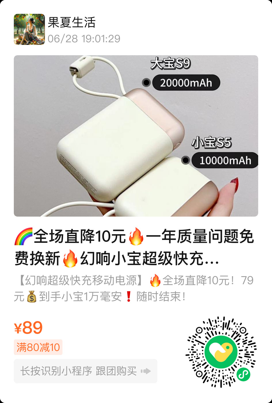 活动期间,幻响小宝/大宝全场直降10元,79元即可带走10000mAh“小宝”,119元拥有20000mAh“大宝”。一年内非人为质量问题免费换新。还有满80减10元的超值福利,随时可能结束。