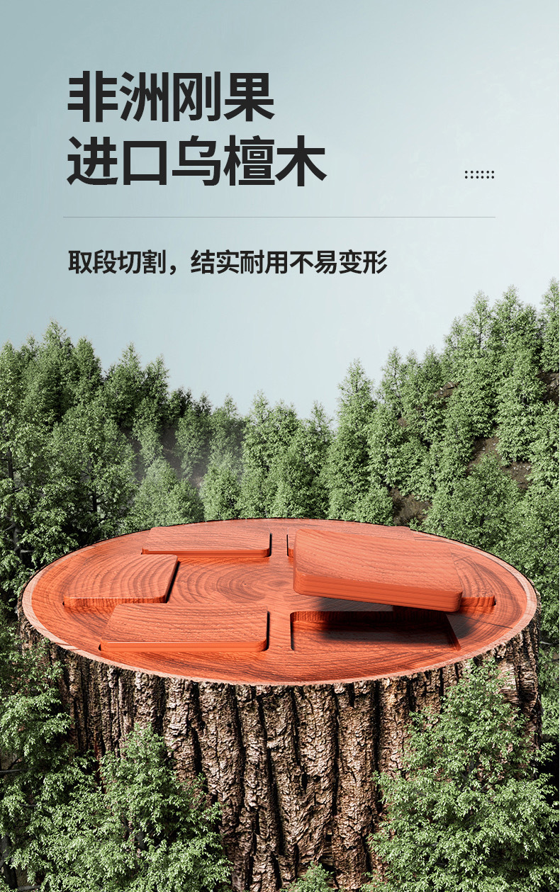 在遥远的非洲丛林中,乌檀树静静生长,它不像速成木那样匆忙扎根、急着成材,而是默默在岁月中累积坚韧与沉稳。正如《红楼梦》里贾母所爱——“老物件、老木头,最养人心”,这整块乌檀木菜板,便是那沉淀了二百年阳光雨露的老朋友,不拼接,不施胶,无需修饰,却自带一身高贵与安全。它不浮夸,却分量十足,每一道菜都仿佛有了一个安心的起点。