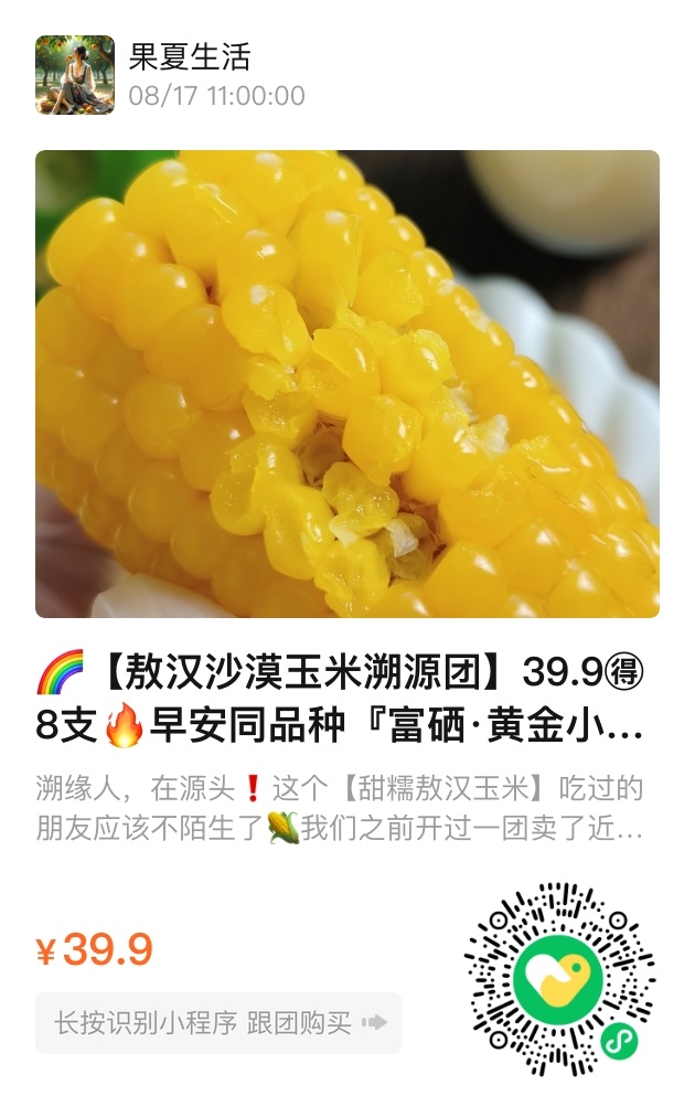 这玉米,真空包装却不冷漠,甚至贴心地在棒子上打了孔——为了你蒸的时候不被烫,为了孩子吃的时候不费力。每10棒只选6棒的高筛选率,不是为了噱头,而是因为“好”从来不需要多余的修饰。它的口感不刻意,香气不铺张,就像一位衣着素雅却眼神温柔的长者,不喧哗,自有力量。