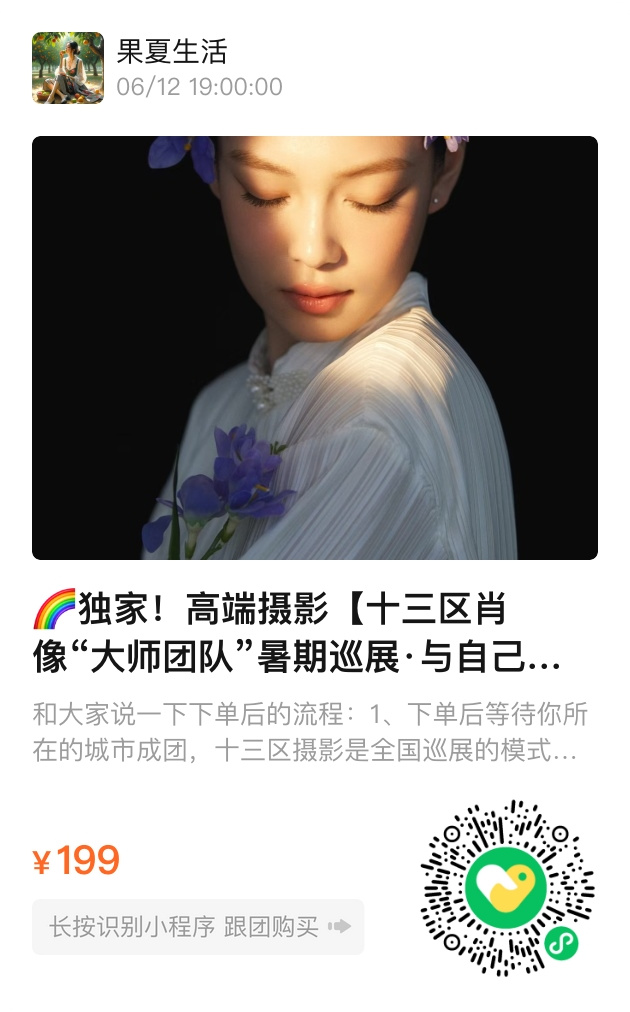这次活动由十三区大师团队亲自操刀,仅需199元,即可享受2套高定服装、2次明星妆面和2张精修肖像。真正做到不推销、不套娃、不吓人,让你在温柔氛围中与自己对话、发现自己的闪光点。这不仅是一场拍摄,更是一场与自己相遇的旅程。