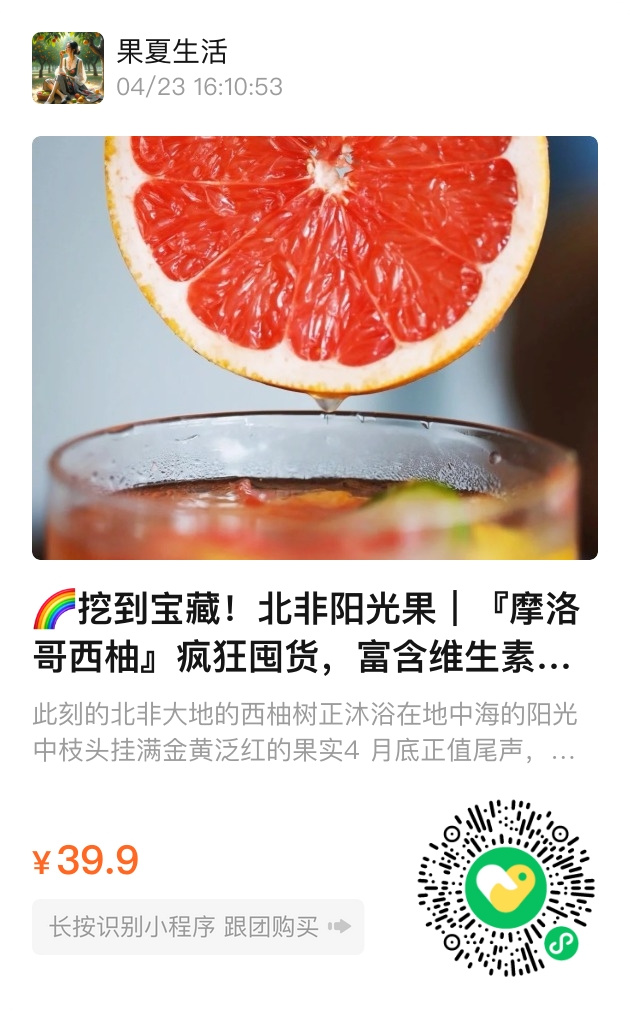 活动内容:期间购买摩洛哥西柚,享受限时优惠价,并可获赠创意西柚食谱卡片,让健康与美味相伴。