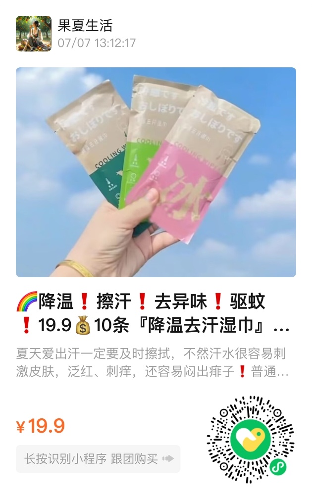 总结:『降温去汗湿巾』以植物黑科技实现长效降温,安全成分呵护肌肤,大容量高性价比,是应对高温的实用之选。抓住活动囤货,轻松拥抱清爽夏日!