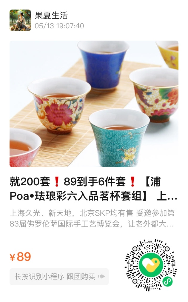 限时活动:原价298元的珐琅彩六入套组,今日团购价仅89元,200套售完即止。随单附赠高档礼盒,自留珍藏或赠予知音皆是心意之选。