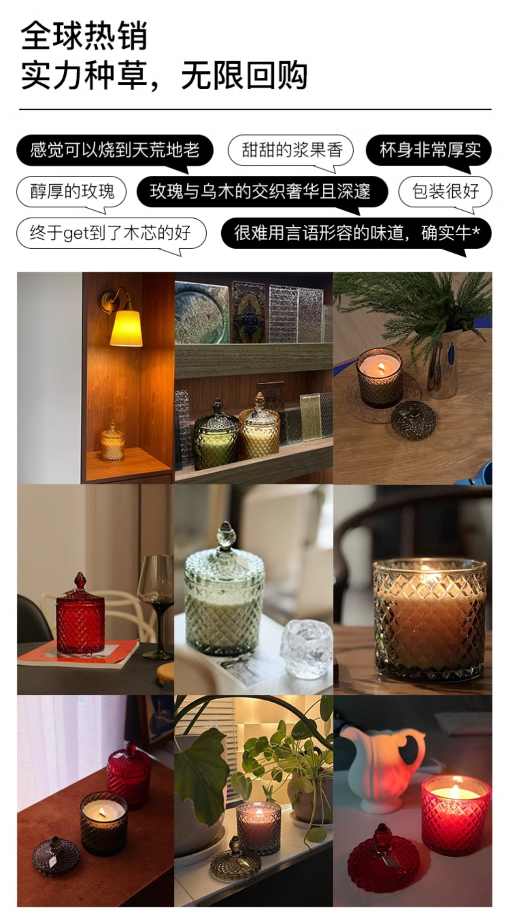 北欧人深谙少即是多的哲学。这烛杯比咖啡壶还沉,却只在底部悄悄雕了圈藤蔓花纹。燃烧时烛光透过波浪纹玻璃,在墙上游成波罗的海的柔波。圣诞夜把它放在餐桌上,熄灭的瞬间,余温会让最后几缕琥珀香突然浓郁起来——仿佛雪夜里归家的人,在玄关抖落满身星光。