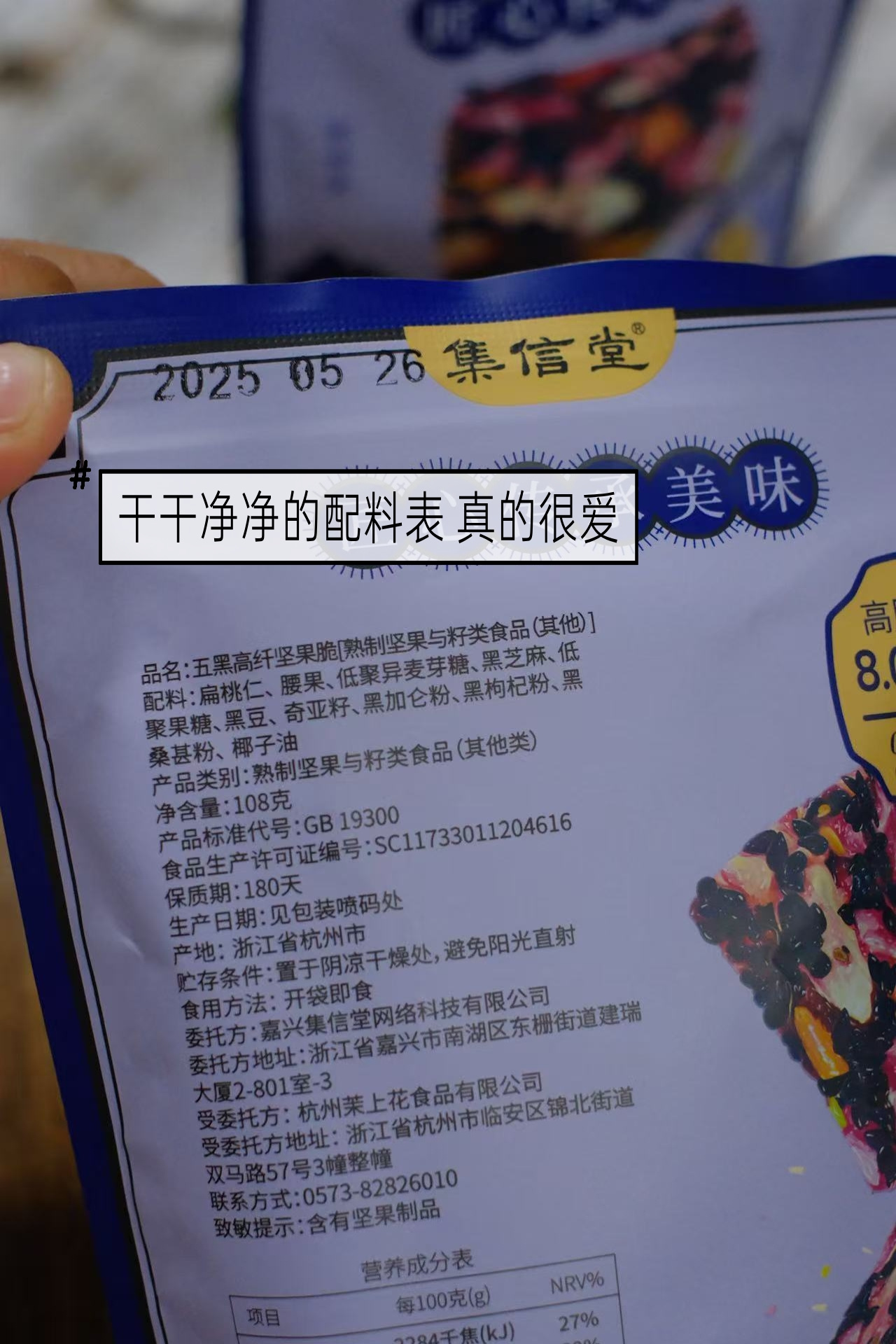 总结:集信堂五黑高纤坚果脆以传统养生食材入现代零食,高坚果含量搭配低糖工艺,独立包装方便随身享用,下单4袋赠黑豆1盒,让健康与美味自然融合。