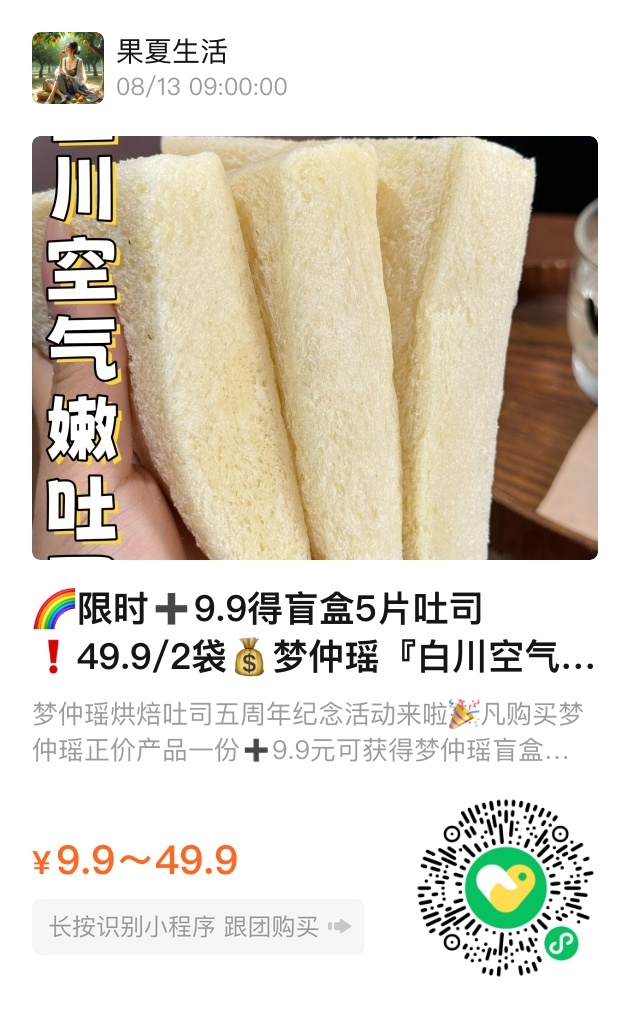从烤箱到餐桌,白川吐司的旅程藏着许多温柔的“反叛”。不用防腐剂却保质90天,靠的是千万级日式生产线和臭氧灭菌工艺;海藻糖的微甜像一句含蓄的情话,拒绝齁腻的直白。最动人的莫过于盲盒玩法——9.9元换5种随机口味,像拆开一封未知的情书,或许会遇见南瓜泥的秋意,或许撞上经典奶香的初夏。所谓生活之美,有时不过是一片吐司带来的小确幸。