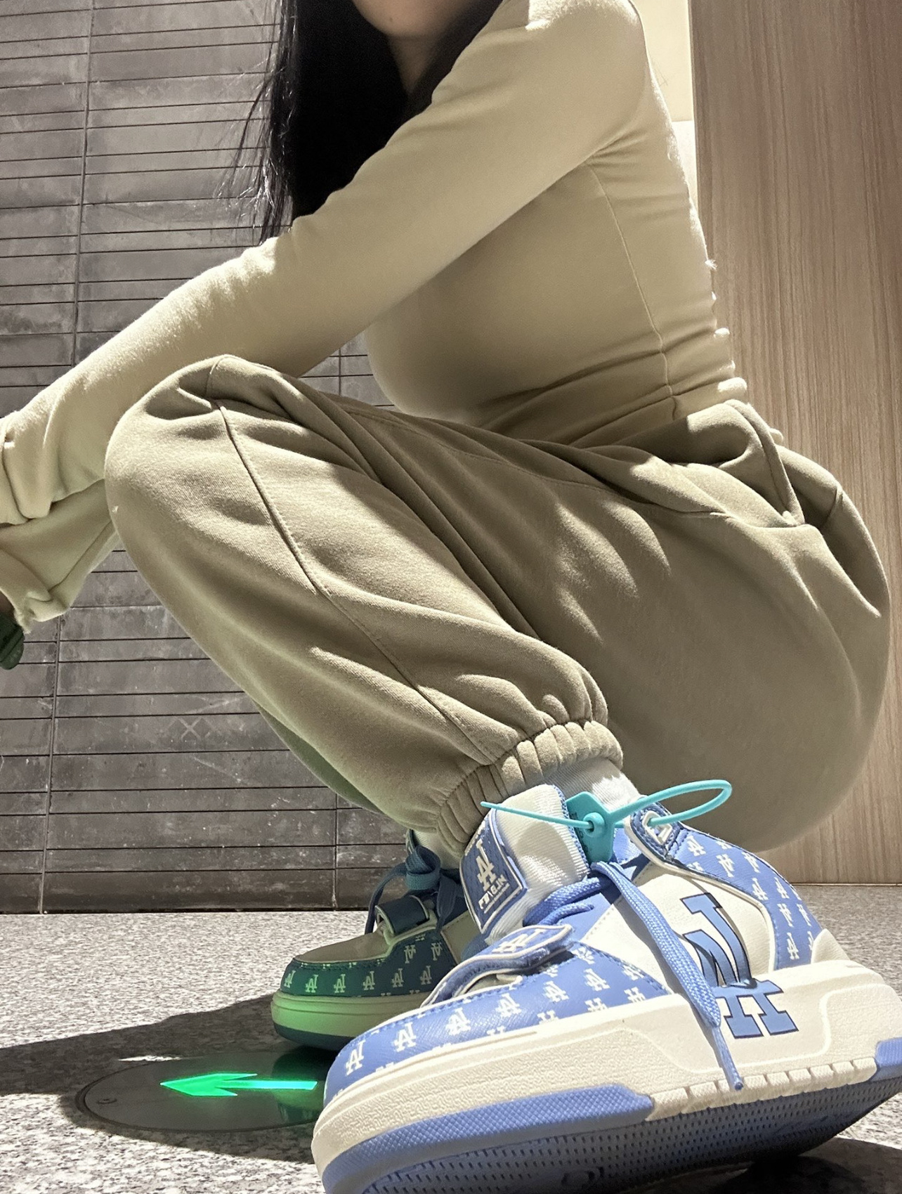有趣的是,MLB学长鞋的爆红藏着个社会学隐喻。当老爹鞋用笨拙廓形解构了传统审美,液态镀层板鞋又以未来感重塑学院风,我们终于在这些矛盾的设计语言里,发现了Z世代对“身份认同”的新注解——既要老爹鞋的复古底气,又要学长鞋的清爽少年感,像极了年轻人一边转发“孔乙己文学”,一边用增高鞋垫垫起野心的模样。就连鞋舌内侧的EUR码数都成了文化符号:36.5码的姑娘和44码的男孩穿同款情侣鞋时,连磨脚都是甜蜜的平权运动。