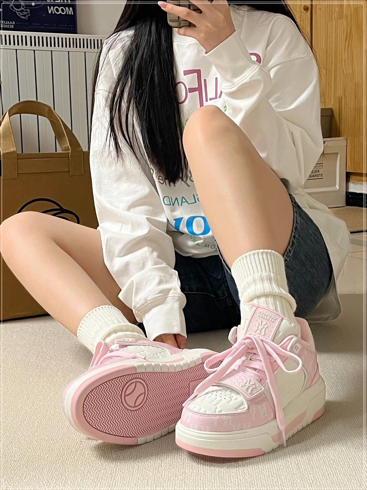翻开虞书欣的街拍,檀健次的机场照,总能被他们脚上那抹MLB的老花图腾晃了神。这哪里是鞋子?分明是写给当代年轻人的一封立体情书——用合成革的温柔包裹亚洲脚型,拿厚底设计丈量都市人的身高焦虑,再让那个百年棒球品牌的徽标悄悄诉说着“经典不必贵”的生活哲学。见过专柜四位数的标签在脚踝处徘徊的人,此刻摸着同款鞋盒里附赠的防伪吊牌,突然理解了消费主义的另一重含义:所谓精致,不过是把星辰大海穿成脚踏实地。