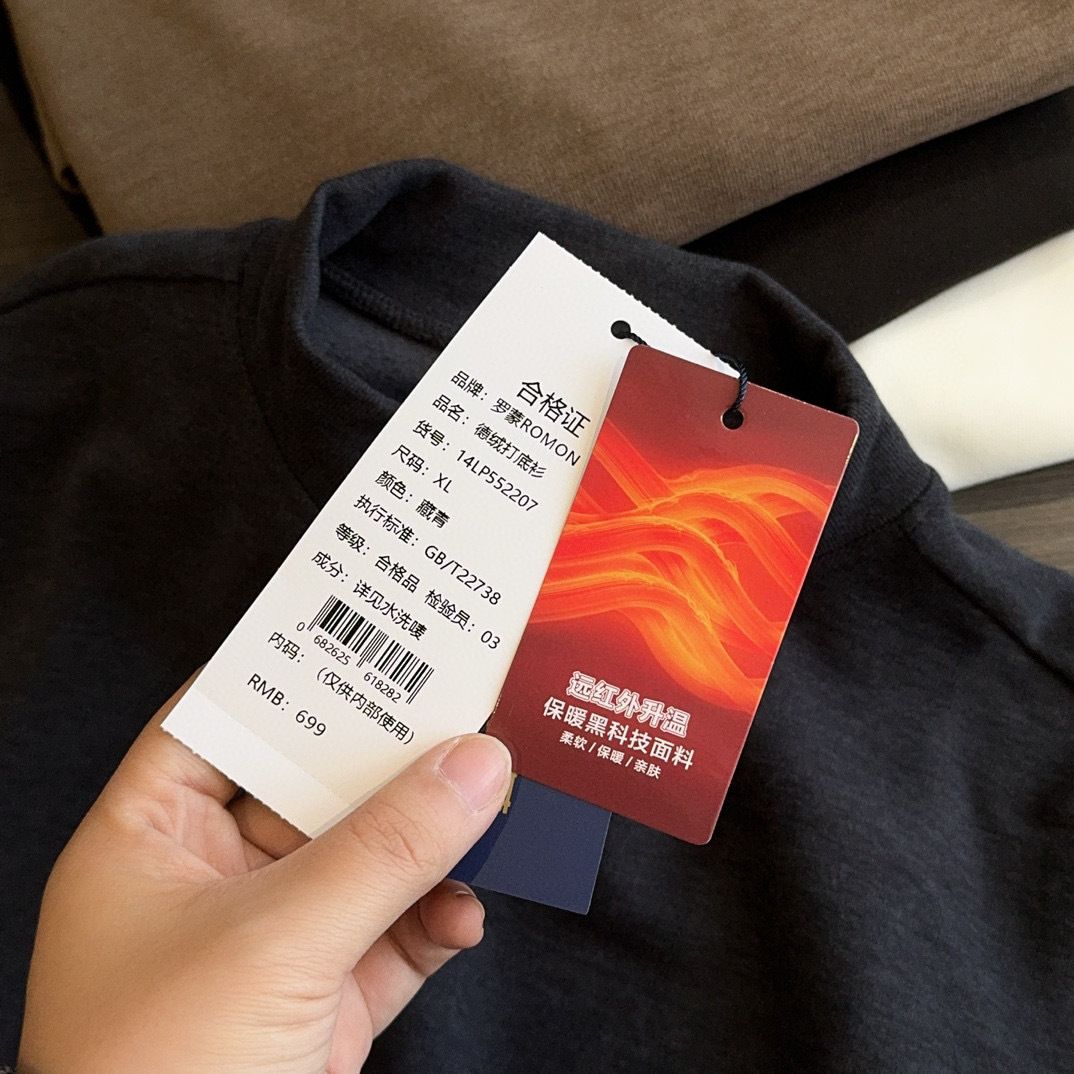 您或许也在寻找一件高频率实穿的内搭吧?罗蒙这款打底衫用德国纤维科技实现“越穿越暖”,不起球、不变形的特性,让它成为衣橱里经得起时间考验的实用单品。驼色沉稳、黑色百搭、灰色清爽、白色清新,四种配色适配不同场合与风格,从年轻爸爸到长辈爷爷,一件打底就能串联起全家人的温暖冬日。价格虽跌破冰点,品质却始终如一,这正是我们想带给您的诚意。