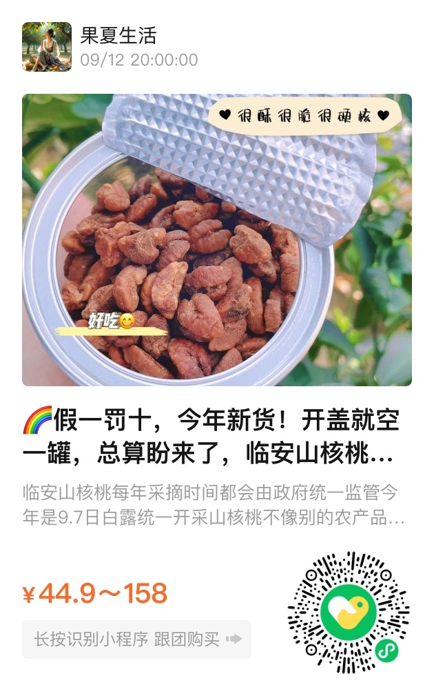 办公室的下午,抓一把山核桃仁配清茶,酥脆里泛起隐约的甘甜。不饱和脂肪酸的饱足感,让加班也少了份焦虑;孩子放学回来,拈几粒当零嘴,锌和亚麻酸悄悄滋养着生长中的大脑。若说有什么食物能同时装着大山的厚重与生活的轻盈,大概就是这一罐——它不必华丽,却能在齿间还原一座秋山的阳光、风雨,和农人踮脚打果时,落在竹竿上的那句:“今年又是好收成。”