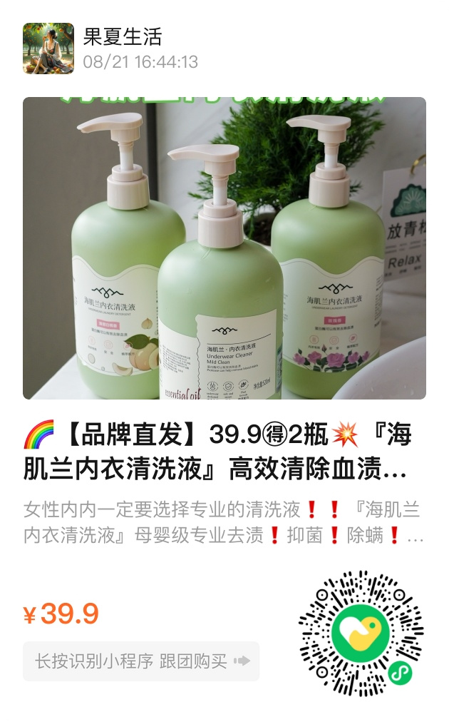 总结:从传统洁净智慧到现代抑菌科技,海肌兰内衣清洗液用氨基酸基底与植物成分,让日常洗涤成为轻柔仪式。限时39.9元两瓶的活动中,每一泵都是对贴身之物的细腻关照。