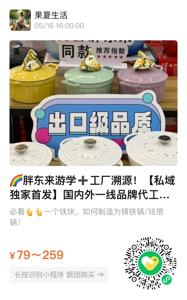 溯源活动: 胖东来同款皇冠珐琅锅直降117元,229元带走千元轻奢品质;限量659个福袋珐琅锅139元秒杀,尾货的价格,头部的工艺。