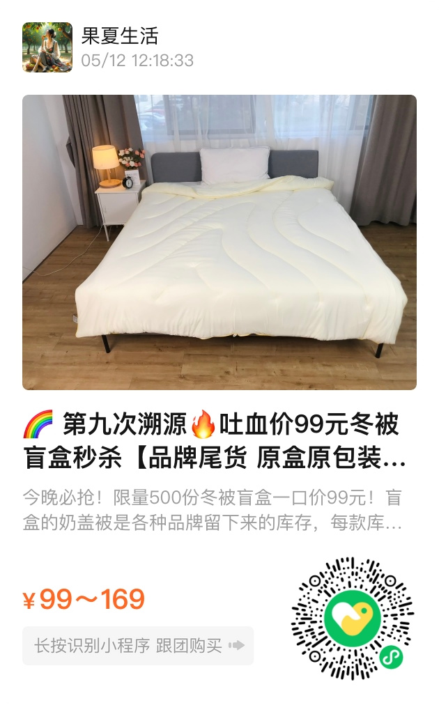 工厂老师傅说:”咱们这面料吸汗像荷叶兜露水。”果然见水珠在上面滚成珍珠却不渗——难怪那些出口三十年的老客总回头找。眼下清仓的冬被盲盒,99元开出的或许是某莱同款流水线上的”漏网之鱼”。今晚500份秒杀,抢到的怕是要学苏东坡”卧看晓色朦胧”时,赖床多半个时辰。