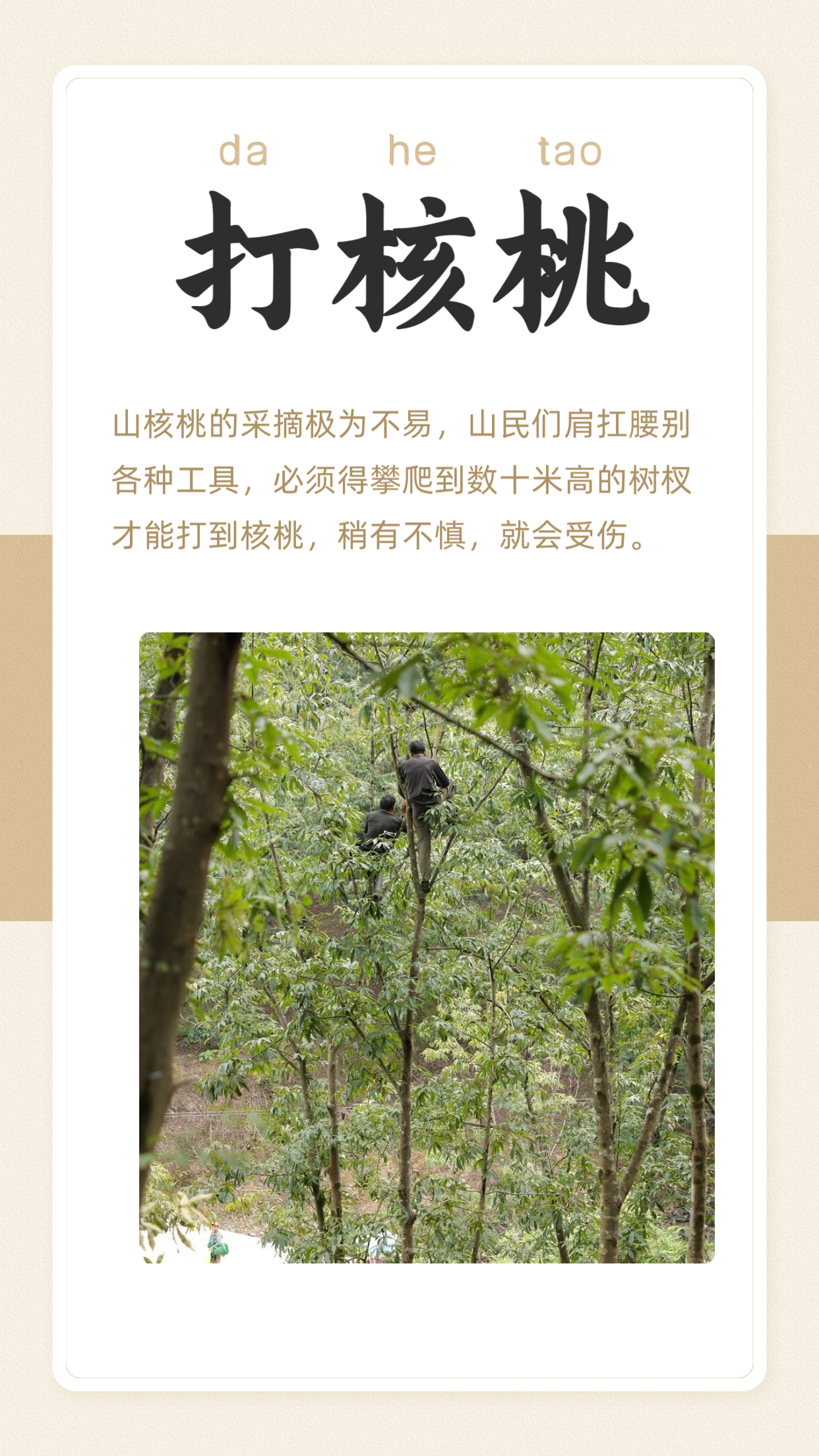 白露时节的晨雾还未散尽,天目山的陡坡上已响起竹竿敲打树枝的脆响。两百年的老树梢头,青黄相间的山核桃如雨点坠落,这是临安人与自然的千年契约。渔小觅的山核桃仁,便从这竹竿一摇、扁担一挑的丰收故事开始——每颗果实都要经历12道工序的蜕变,褪去苦涩外衣,只留酥脆本真,像极了古人用粗粝砂纸打磨璞玉的耐心。