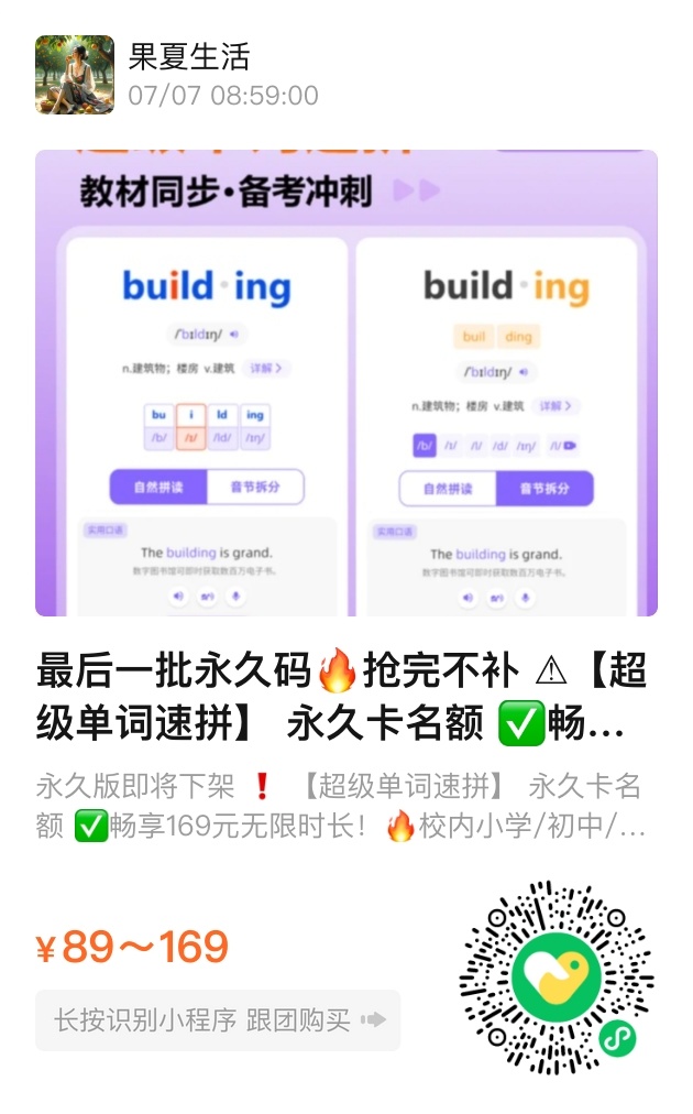 总结:新课标下,词汇量是英语学习的关键。【超级单词速拼】永久卡用AI技术为孩子量身定制学习路径,省去高价培训班费用,随时随地高效提升。169元投资孩子终生英语能力,值得冲!