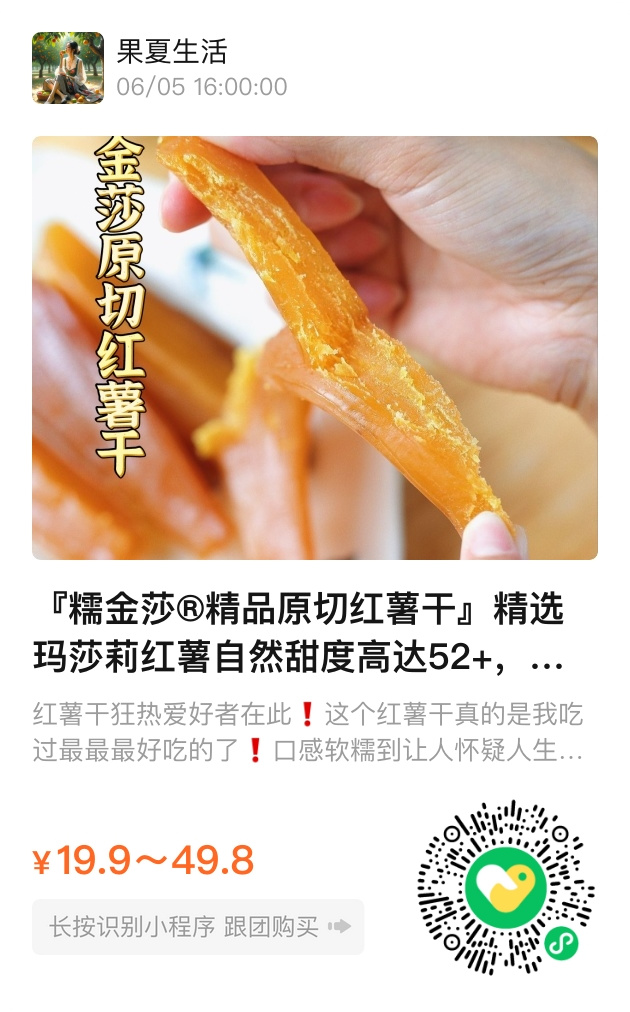糯金莎®️精品原切红薯干,用最自然的味道,温暖你的味蕾,也守护你的健康。一口下去,既是零食,也是情怀。