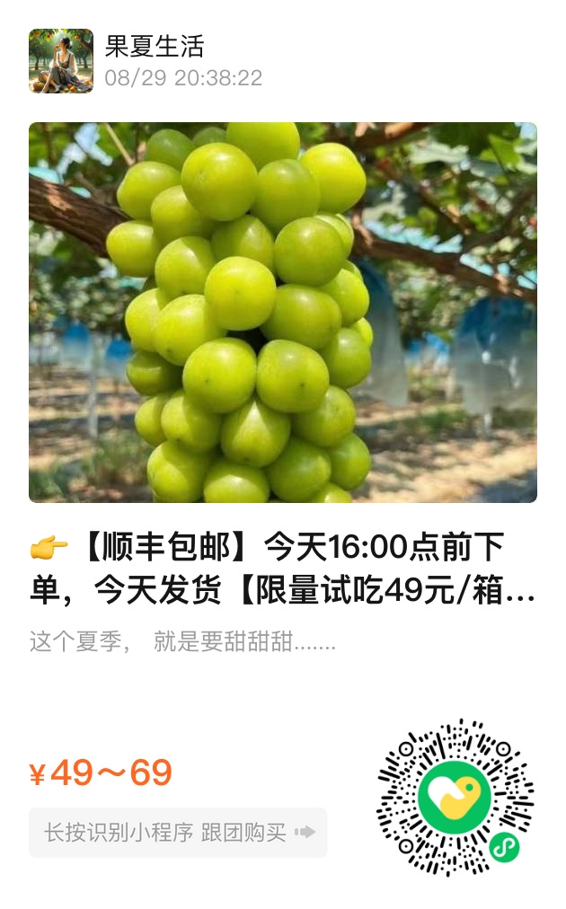 现在下单,顺丰包邮送达,48小时内新鲜发货。活动期间,原价48元/斤的同款阳光玫瑰青提,为您提供超值尝鲜价。这份夏日限定甜蜜,数量有限,别错过让它点亮您餐桌的机会。