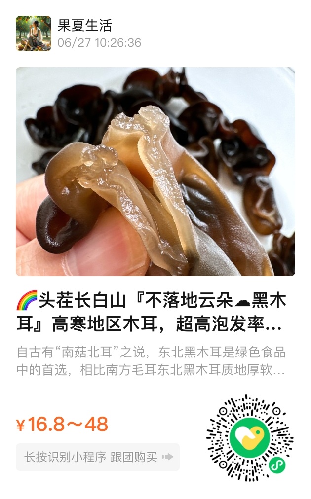 翻开《齐民要术》早有记载:”木耳煮鲫鱼,可解郁结。”而今我们捧出的头茬春耳,胶质浓得能托住筷子,泡发后舒展如古琴师指尖的轮指。去年有位关东老饕来信,说拿它炒野山菌时,竟分不清哪片是肉哪片是木耳。灰白底的耳根证明它不曾沾染泥土,干燥时轻若羽片,遇水却膨胀成墨玉般的厚瓣,这是高寒山区用昼夜温差写就的生命辩证法。