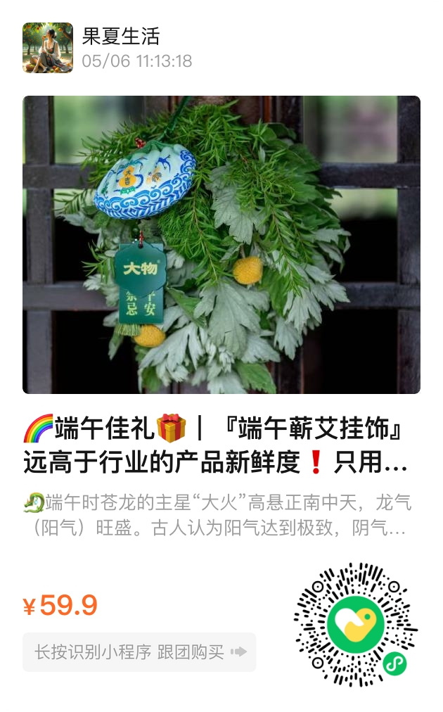 若你细看,每一根蕲艾的脉络里都藏着光阴的故事。蕲春人种艾三年方收一季,风干时连阳光的角度都要斟酌——太燥则失其温润,太潮则损其清冽。这般考究,倒像极了中国人骨子里的中庸之道:既要辟邪驱蚊的实用,也要“温而不燥”的雅意。今年的挂饰添了明信片与香囊,拆箱时或许会抖落几粒艾叶碎屑,那香气倏忽漫开,恍若有人在耳边轻声念起:“手执艾旗招百福呀……”