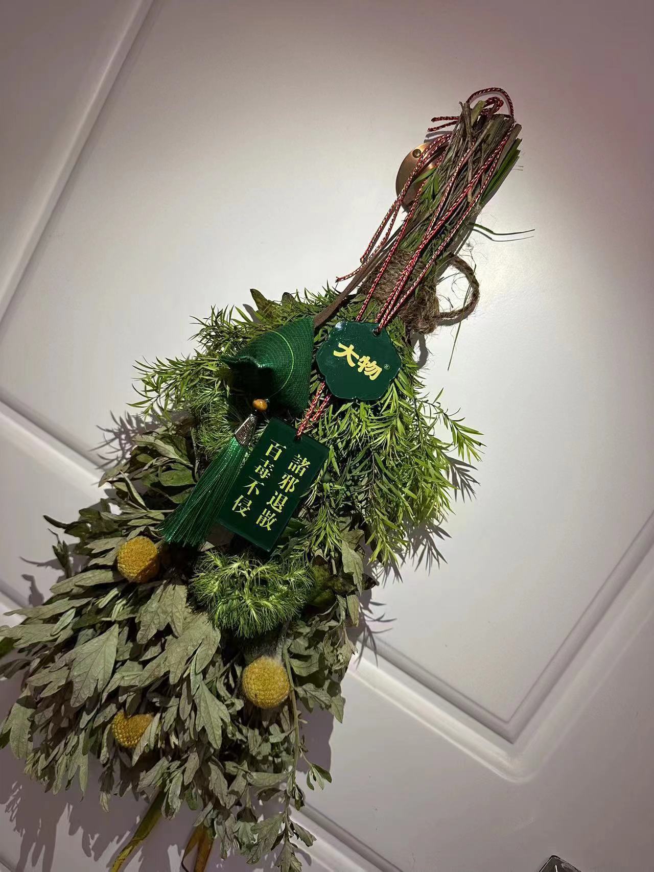 小时候总疑惑,为何端午的艾草非要鲜嫩青翠?后来才懂,这是与时节的和解。农历五月古称“恶月”,阳气鼎盛却虫蛇滋生,古人便以艾为旗、蒲为剑,在门边布一场温柔的“驱邪仪式”。如今我们虽不再惧怕“五毒”,但那一束混着蕲艾、菖蒲与五彩绳的挂饰,依旧让夏日的风穿过时,捎来草木生生不息的密语。有位客人去年把它悬挂书房,年底拆下时发现枯艾依旧形神不散,笑称“连干枯都枯得很有风骨”。