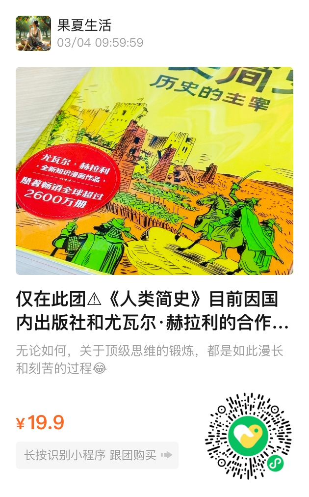 总结:这部横跨人类学、生物学、哲学的跨界奇书,用漫画的轻盈承载思想的厚重,以绝版前的最后低价,为每个迷茫的现代人提供一张”认知清明上河图”。当版权到期钟声响起时,书页里沉睡的十万年人类记忆,或将唤醒某个彻底改变你世界观的美妙清晨。
