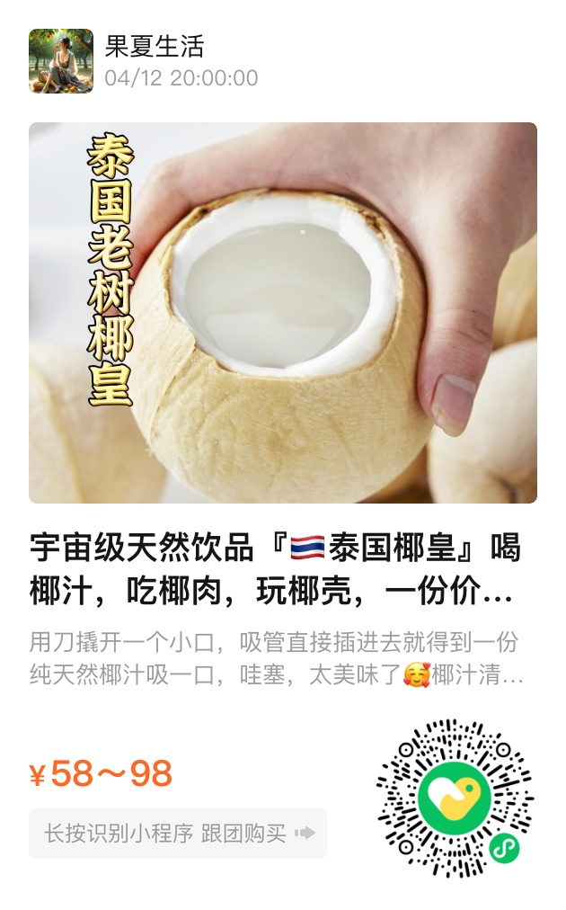 此刻正值椰皇品质最稳定的季节,我们精选的中果每颗400-480g,大果480-600g,随箱附赠的椰子软刀能让开椰过程变得优雅。广东人用它煲汤,云南人拿它做椰子饭,小朋友把椰壳画成彩绘花盆,而疲惫的都市人,或许只需要那口冰镇椰汁带来的片刻清凉。这世间没有完美的水果,但一颗老树椰皇,至少能让你在低头啜饮的瞬间,听见热带海潮的声音。