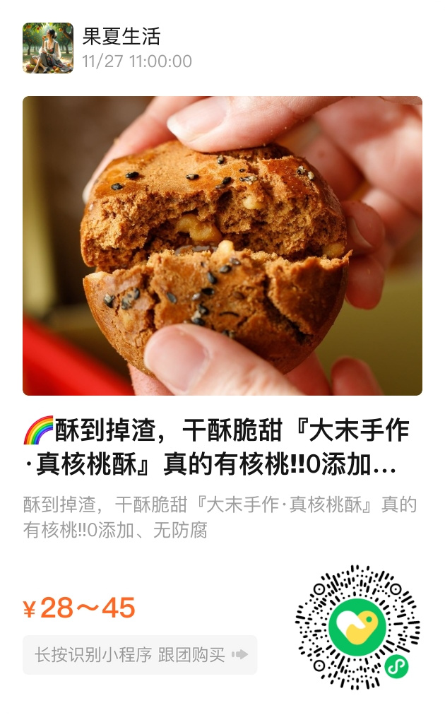 总结:从儿时巷口的点心铺到今日掌心一方酥香,『大末手作·真核桃酥』用朴素的真诚证明了——所谓传统,不过是经过了时间投票的经典。它不必华丽,但每一粒核桃都在讲述土地的情书;它无需速食,慢嚼时涌动的回忆才是最好的添加剂。