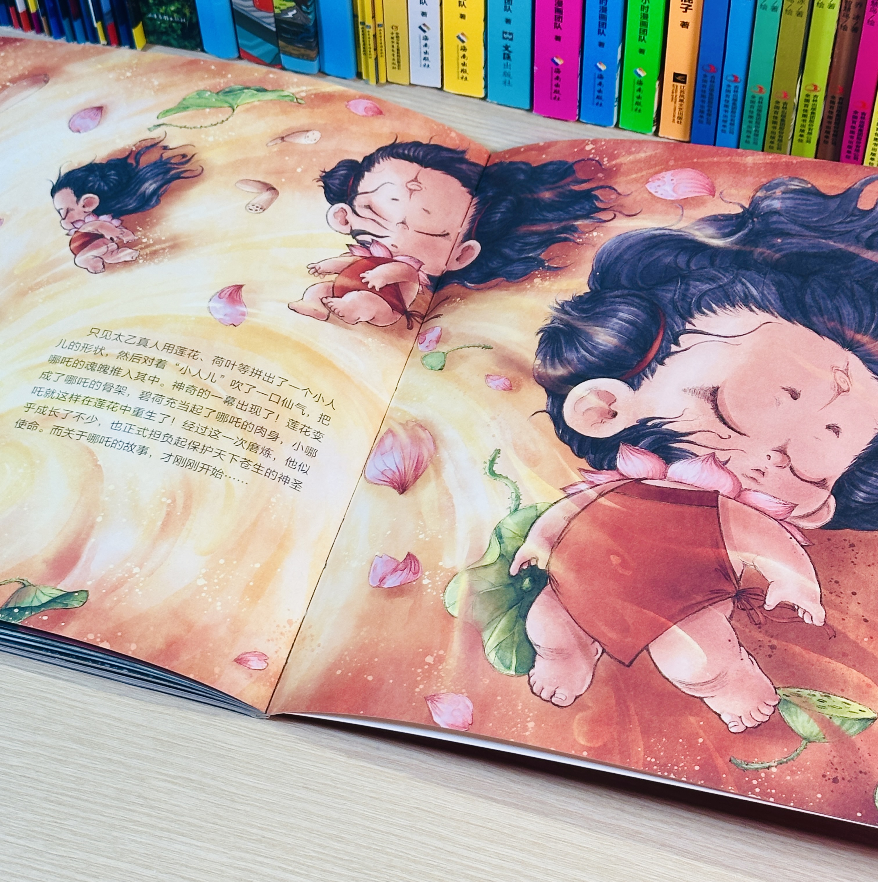 小时候看《封神演义》,总疑惑太乙真人为何选顽童当徒弟。后来才懂,真正的神仙眼中有光——他们看见哪吒闹海时的勇,也看见他给小龙女系混天绫时的柔。这套绘本最动人的,是把”小妖怪”的委屈、”小英雄”的倔强,都画得鲜活得能落下纸来。孩子指尖掠过哪吒眉心火焰纹时,何尝不是在触摸自己心里那簇不肯熄灭的火?