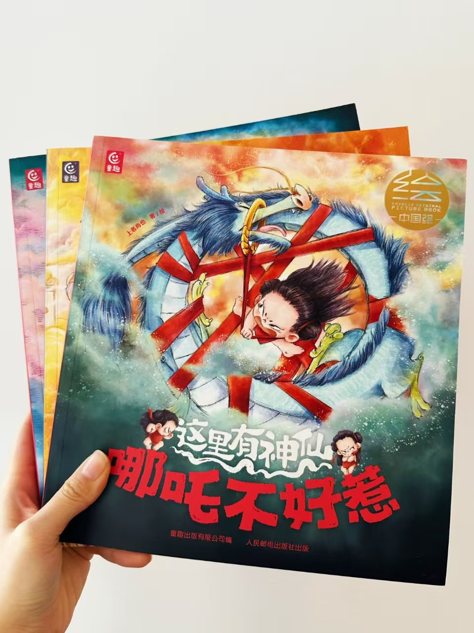 绘本第二辑里有个彩蛋:杨戬牵着哮天犬走过山河,影子投在书页上像座桥。这多像中国故事的妙处——齐天大圣的金箍棒能通天,姜子牙的鱼竿也能钓起人间冷暖。当孩子把三本绘本摊开在桌上,太乙真人的酒壶、嫦娥的玉兔、孙悟空的筋斗云就组成了一条银河,而他们是躺在星河里数故事的小神仙。
