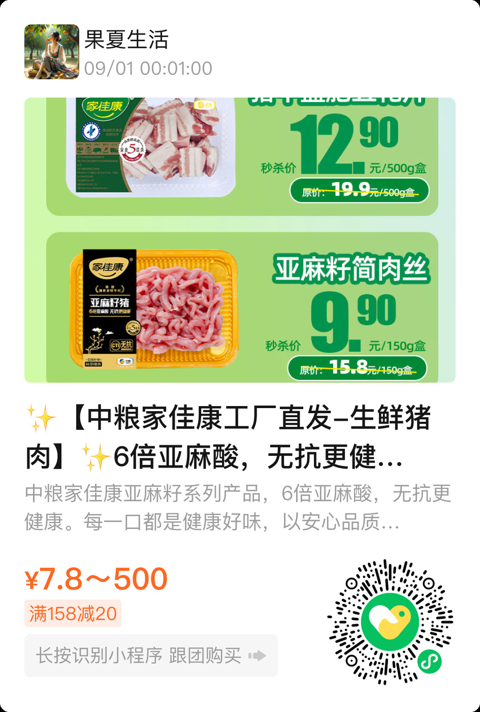 总结:中粮家佳康亚麻籽猪肉以健康品质和安心美味赢得信赖,为家庭的每一餐注入温暖与营养。现在参与活动,享受新鲜直达的优质肉品,让健康生活从餐桌开始。
