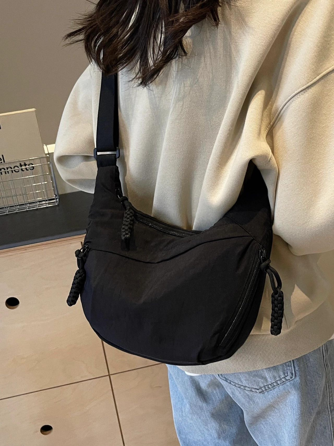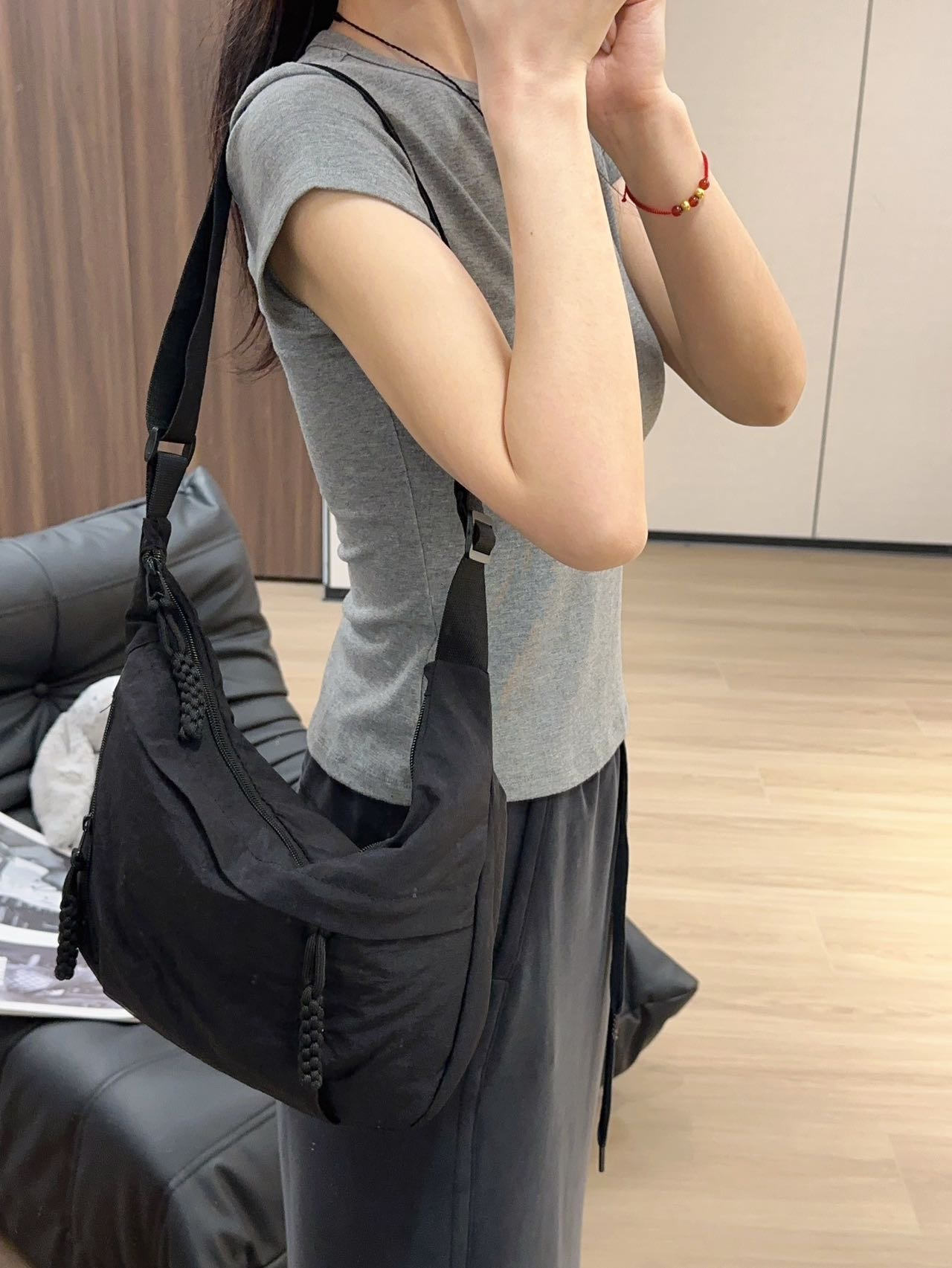 第一眼看到这只无印风斜挎饺子包,像是撞见了东京街头的晨光——尼龙面料泛着温润的光泽,仿佛能触摸到京都老匠人指尖的温度。它的轻盈让人想起川端康成笔下“雪国”的洁净,171克的重量比一册《枕草子》还轻,却能装下整个生活的从容。那些巧妙的分区口袋多像俳句里的“季语”,井井有条地收纳着日常的零散诗意。