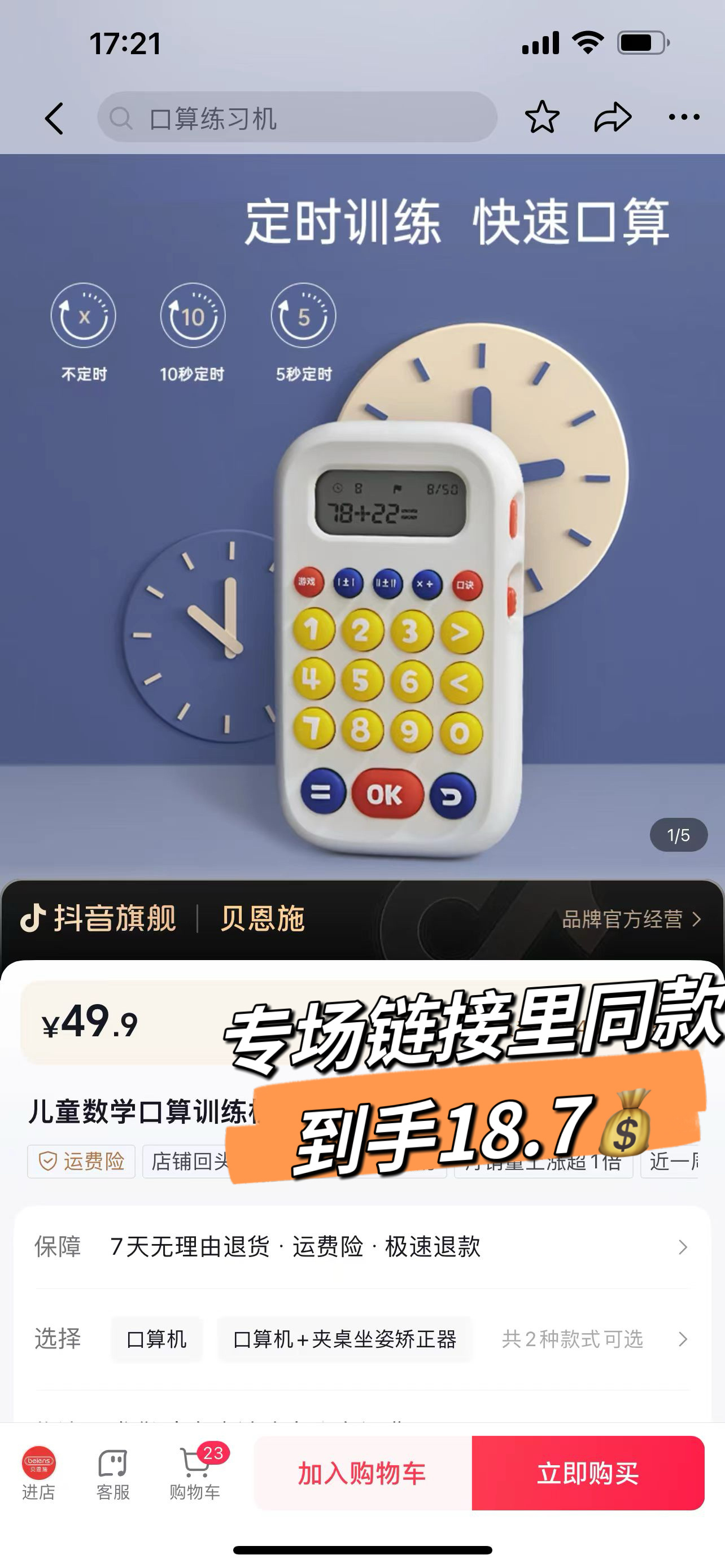 价格直降的惊喜来之不易。看到仓库里所剩不多的库存,既想让大家都能买到心仪好物,又担心手慢无的遗憾。儿童蓝牙耳机从99元降至49.9元,口算机18.7元就能带回家,这样的优惠力度确实罕见。尤其舒尔特训练机仅剩最后一批,59元的单价甚至不到市面一半,专注力培养的好帮手错过实在可惜。