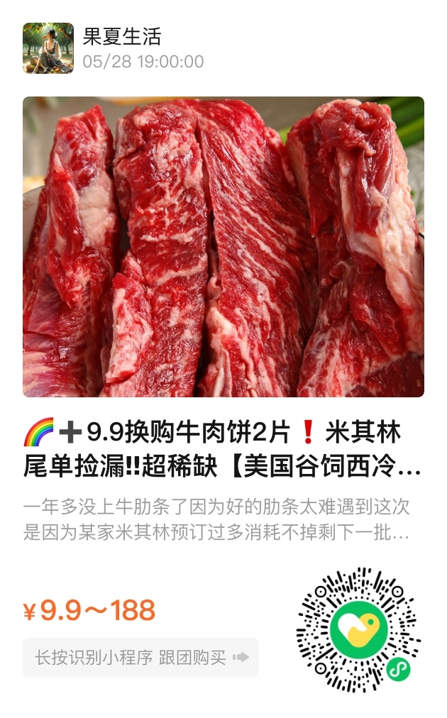 老饕们总说「最香不过贴骨肉」,西冷肋条便是这句话的物理证明。它像牛肉界的六边形战士:2分肥8分瘦的黄金比例,筋膜演奏脆嫩交响乐,清炖时浮起的油花是谷物喂养写的散文诗。对比京东上89元/斤的巴西选手,这批美国谷饲肋条举着63元/斤的价签,倒像是从《饮食男女》剧本里偷跑出来的温情彩蛋。连财务同事都拎回家两袋,毕竟能让老人孩子抢着啃的肉,约等于冰箱里的家庭和谐催化剂。
