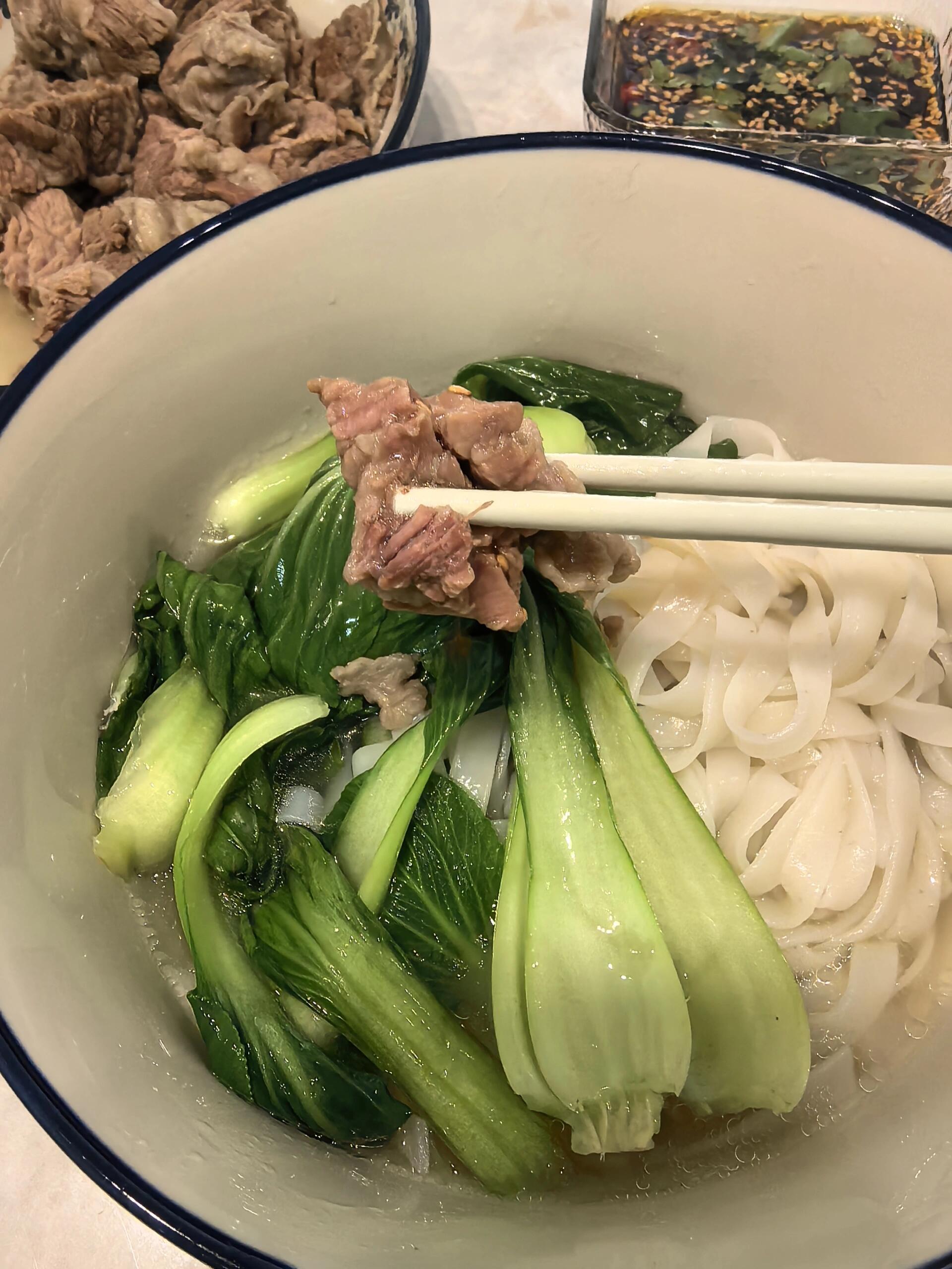 牛肋条的玄机藏在解剖学里——上脑肋条硬如教科书,肩部肋条淡如白开水,唯有西冷部位接过西冷牛排的香气衣钵。10厘米长的肉条凝结着牛生高光时刻,煎烤炖煮时爆发的汁水,是动物脂肪与人类智慧的双向奔赴。当盒马山姆货架上遍寻不着时,这份米其林「尾单」倒显出了生活的小俏皮:原来顶尖美味,偶尔也爱玩捉迷藏。