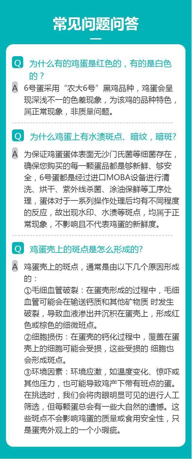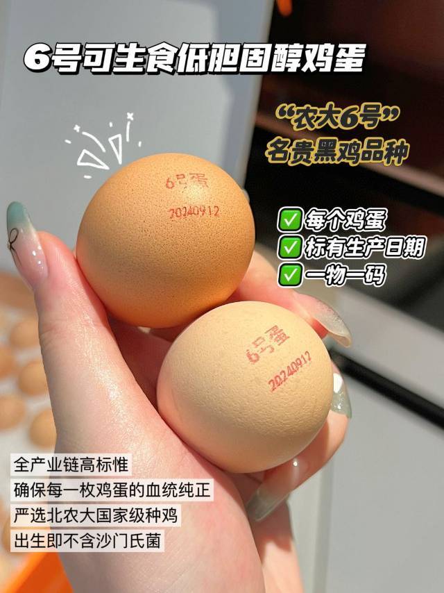 亲爱的顾客,感谢您选择我们的6号可生食低胆固醇鸡蛋。在这个快节奏的生活中,我们深知健康对于每个家庭的重要性。我们理解您对健康和营养的关注,希望以最自然、安全的方式为您的生活增添滋味。这款鸡蛋不仅源于珍稀的农大6号蛋鸡,还以其低胆固醇和丰富的营养成分赢得了许多家庭的青睐。
