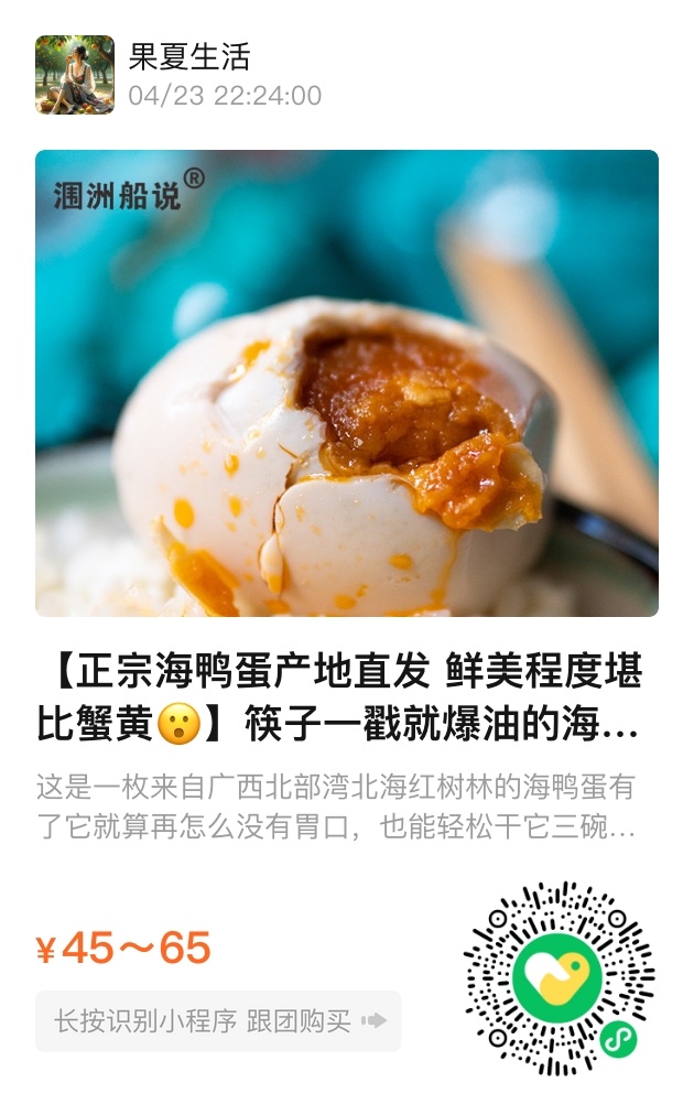 小小的一枚海鸭蛋,不仅让我们的胃得到慰藉,也用自身的味道讲述了一个关于广西北部湾的动人故事。在走进海鸭蛋赋予的味觉世界时,不单是在品尝一种食物,更是在体验一种文化,一种生活。这样的感动与满足,是任何丰富的语言描述所无法替代的感知,是一种对生活的默契拥抱。