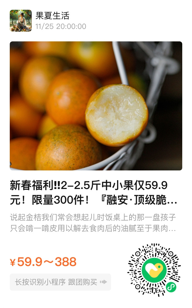 我们理解您对于选择水果的重视,就像选择送给自己和家人最贴心的冬日礼物。或许,一想到金桔,您会回忆起那些酸涩的时光,不得不舍弃的果肉和无奈的塞牙感。但相信我们,这次的融安脆蜜金柑,定会让您重新感受金桔的美好——那浑然天成的甜蜜,从内到外的润泽,仿佛每个细胞都在被悉心呵护。