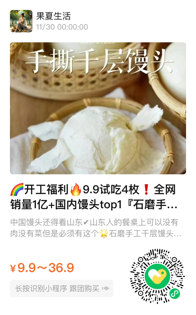 为了感谢您的支持与信任,我们推出了“开工福利”活动——花费仅需9.9元即可试吃4枚石磨手工千层馒头。这项活动不仅让您以实惠的价格体验美食,更是我们向每一位热爱生活、热爱美食的顾客致以敬意的方式。